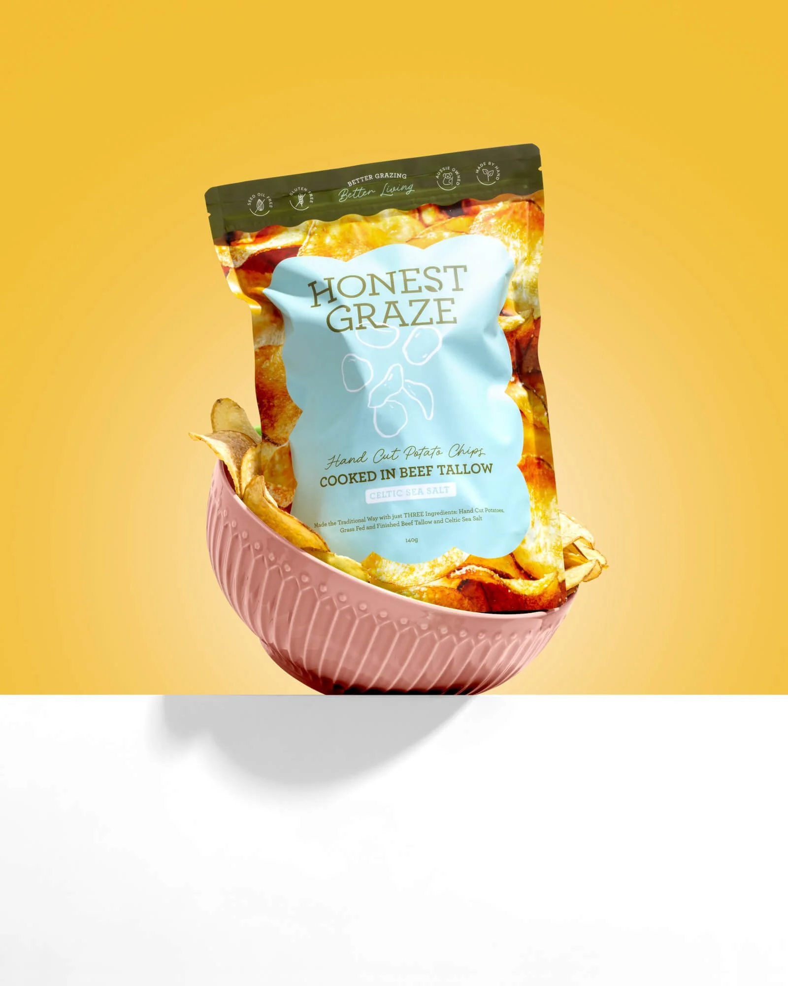 These grass fed and finished beef tallow potato chips, dusted with a pinch of Celtic sea salt, are what happens when a butcher dreams big. Made in small batches by hand in Cobaki, NSW, they’re crispy, golden, and fair dinkum delicious — seed-oil free and packed with honest flavour. Born from a mission to waste less and taste more, they’re the kind of snack you can feel good about sharing around the kitchen table. Honest food, made for hungry families.