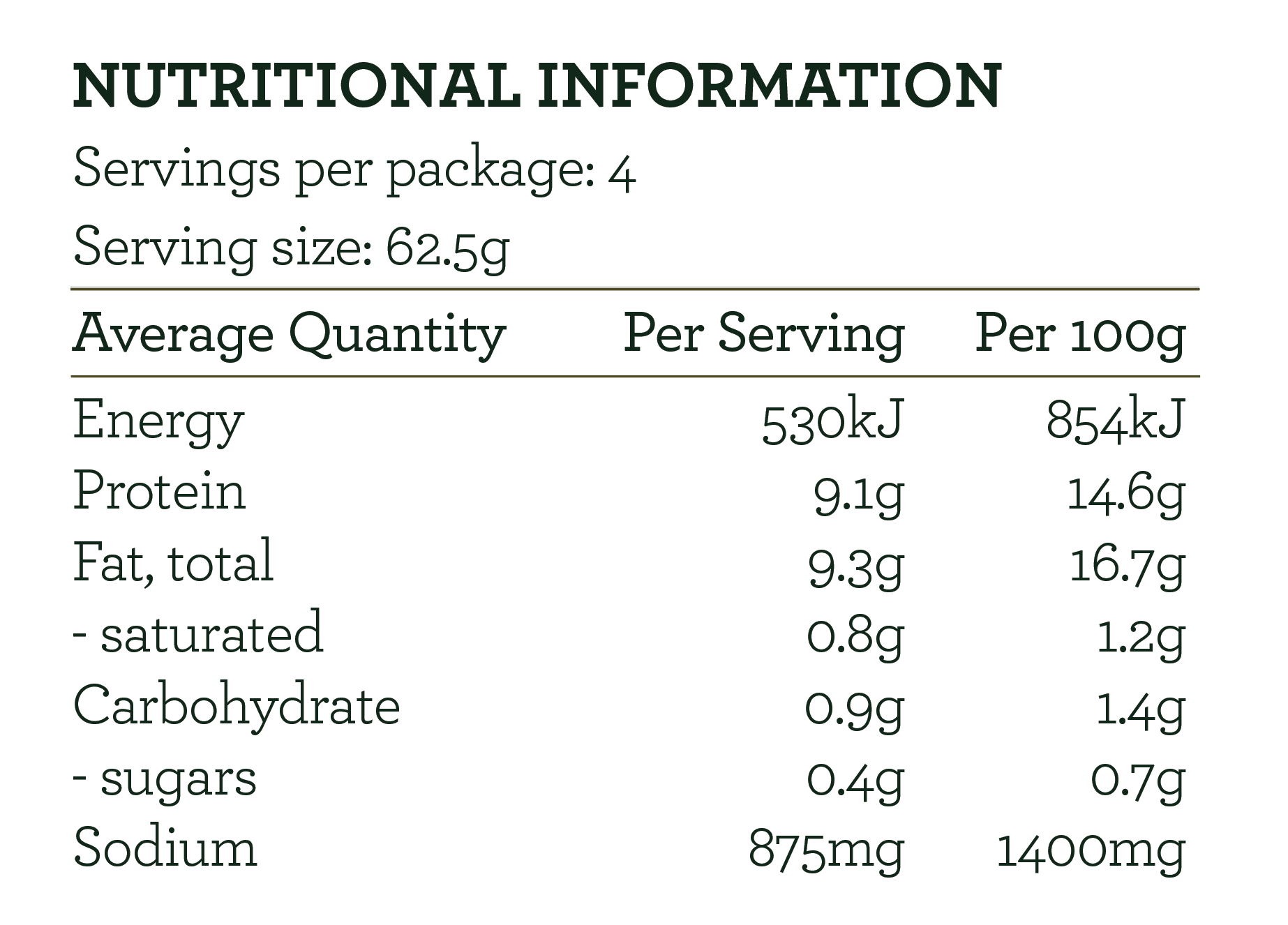 This streaky bacon is made from free range pork and just three other ingredients: Celtic sea salt, celery, and raw honey. Handcrafted in small batches in Cobaki, NSW, it’s preservative free and packed with natural, fair dinkum flavour. Born from a butcher’s mission to waste less and taste more, it’s bacon you can feel good about — nothing artificial, just honest food for hearty breakfasts and hungry families.